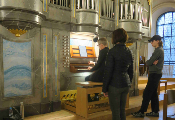 Die Instrumente Orgel und Geige waren nicht nur Begleitung, sondern bereicherten auch solistisch das Programm. Bach als Kontrast zu den nordischen modernen Kompositionen fügte sich wundervoll ein. Martin Heini gab eine eindrückliche Aufführung der Fantasie und Fuge g-moll für Orgel solo. Silviya Savova-Hartkamp spielte die Gavotte und Siciliano mit viel Können, sie war mit der Violine auch in jedem Lied eine wichtige Stimme, die sich zu behaupten wusste. Die Chormitglieder selber waren auch sehr beeindruckt von ihrem Spiel.