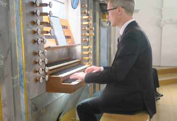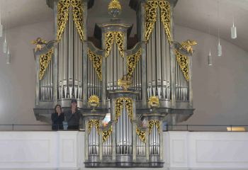 Der Titel des Konzertes - nach einem Ausspruch des Komponisten César Franck(,) „Mon orgue, c’est un orchestre“ - versprach ein abwechslungsreiches Klangerlebnis. Martin Heini gab seiner Freude Ausdruck, dass das Konzert nun drei Jahre später als geplant doch noch zur Aufführung kommt. ( – )Corona war einer der Gründe für die Verzögerung. Er erklärte, dass die gewählten Stücke über lange Entwicklungsbögen und Klangfarbenwechsel verfügen. Klangstärken von pianissimo bis tutti werden sich steigern. Der Organist versprach der Orgel vielfältige Töne vergleichbar mit einem Orchester zu entlocken. Für die Kompositionen von Franck und Duruflé war Martin Heini auf Unterstützung beim Registrieren angewiesen. Schön dass seine Frau Carla und Sohn Andri den Part auf der Empore übernahmen - sozusagen ein Heimspiel! Diese anspruchsvolle Arbeit geschah im Stillen und hinter dem Rücken der Konzertbesucher.